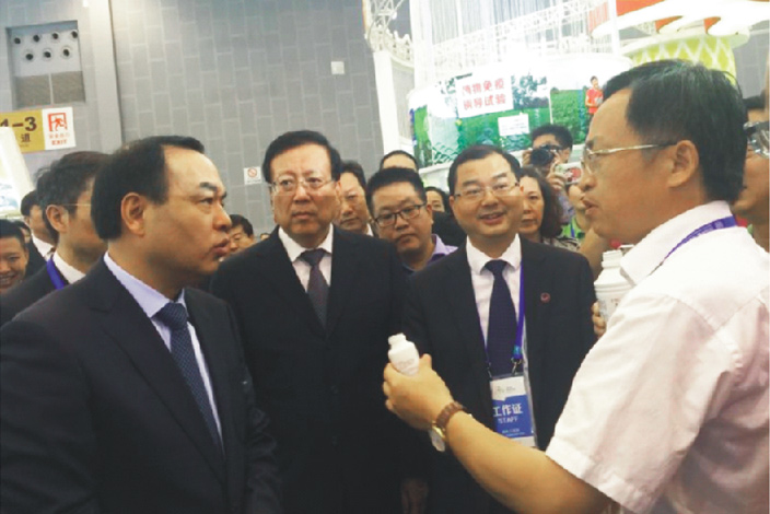 成都市農(nóng)委總農(nóng)藝師姚光貴向成都市委唐書(shū)記介紹可以喝的太抗生物農(nóng)藥(2016年創(chuàng)交會(huì)) -