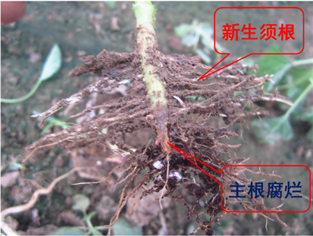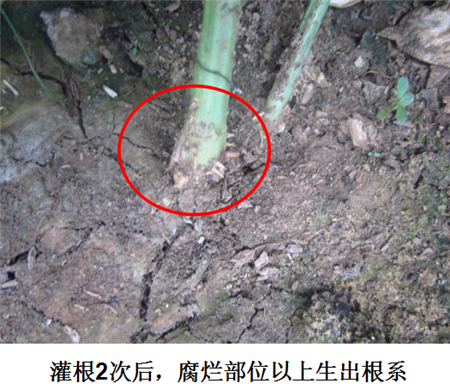試驗結果:根腐發(fā)病部位上方長出新根,植株恢復健康生長。